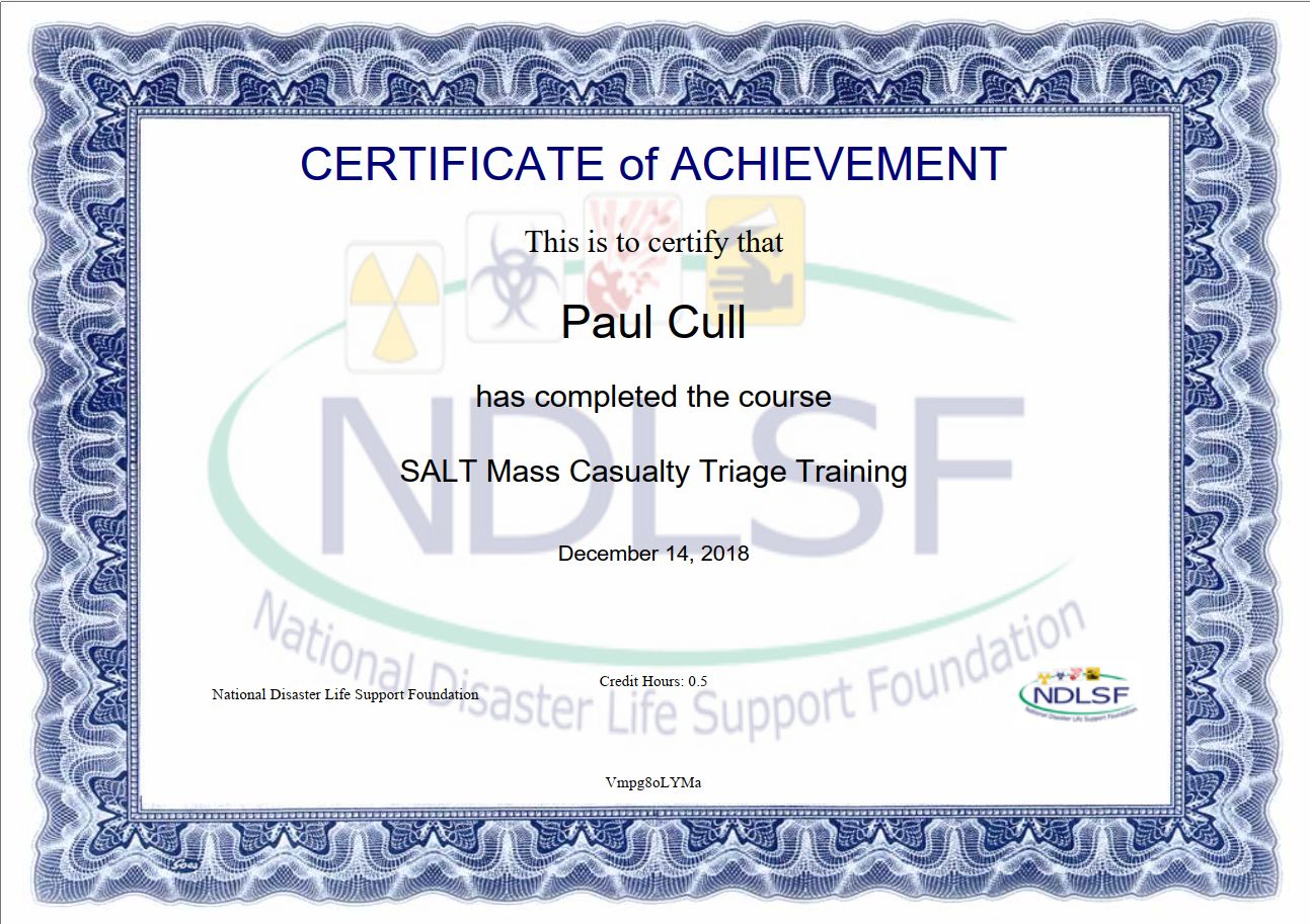SALT Mass Casualty Triage Training  Certificate of Achievement