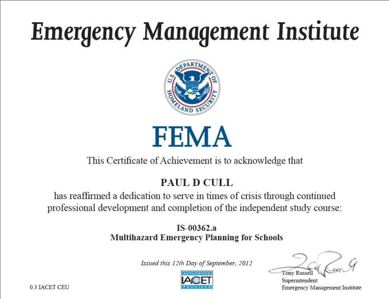 Multihazard Emergency Planning for Schools Certificate  Multihazard Emergency Planning for Schools