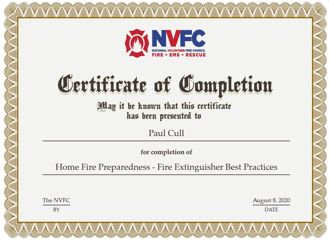Firefighting Training (2008) Online Component Certificate  Firefighting Training (2008) Online Component Certificate